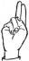 На ћирилици написано САНДРА ЈЕВЂЕНИЋ састоји се из 14 слова [?]. Исписано ћириличном једноручном азбуком за глувонеме: